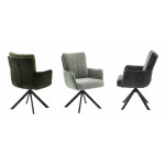 Bardzo wygodne krzesło obrotowe idealne do salonu czy jadalni.Piękne i gustowne krzesło z podłokietnikiem w najmodniejszych i aktualnych wzorach. W siedzisku posiada sprężyny kieszonkowe. Obrót siedziska (360°) z aut. mech. powrotnym.