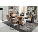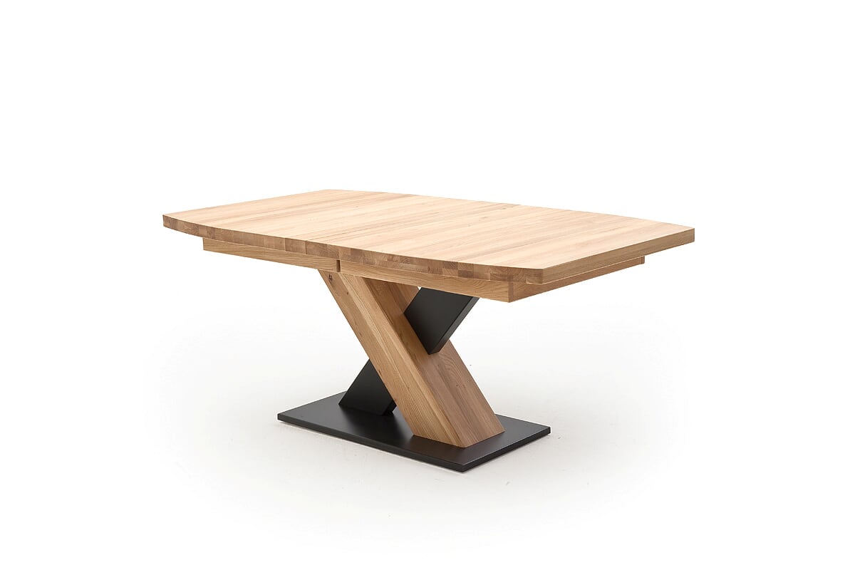 Stół olejowany. blat zaokrąglony. grubość z pogrubiaczem 5 cm. podstawa czarna.