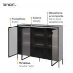 Przeszklona komoda jest nie tylko miejscem do przechowywania, ale również wyjątkowym meblem, który od wejścia przyciąga wzrok. Dzięki przeszklonym frontom, komoda umożliwia prezentację ulubionych dekoracji, kolekcji książek, zastawy czy innych przedmiotów, które chcesz wyeksponować. To doskonałe rozwiązanie, aby dodać nie tylko funkcjonalność, ale także osobistego charakteru do wnętrza. Przeszklona komoda z kolekcji TREND została starannie wykonana z wysokiej jakości materiałów, co gwarantuje trwałość i solidność mebla. Dzięki zastosowaniu oświetlenia led z łatwością wprowadzisz do swojego wnętrza nastrojowy klimat. Opcjonalnie możesz również doposażyć ją w oświetlenie umiejscowione za półkami wewnętrznymi. Jeśli poszukujesz przeszklonej komody do salonu, która będzie zarówno funkcjonalna, jak i estetyczna, to TR-08 jest idealnym wyborem. Przekonaj się sam, dlaczego przeszklona komoda jest niezastąpiona w salonie i pozwól jej dodać stylu i elegancji Twojemu wnętrzu.