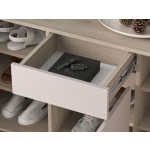 Wieszak Voco 07 to niezbędny mebel do przedpokoju. Prosty design sprawia, że doskonale dopełni każde wnętrze. Mebel składa się z ośmiu wytrzymałych haczyków na odzież wierzchnią. Tego typu wieszak gwarantuje szybkość i łatwość sięgania po potrzebne ubrania. Dolna część mebla to miękka, tapicerowana powierzchnia, która sprawdzi się jako wygodne oparcie. Welurowa tkanina wprowadzi do wnętrza poczucie ciepła i elegancji. Wieszak idealnie pasuje do szafek na buty Voco.