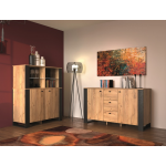 Miłośnicy wnętrz dzielą się na tych, którzy uwielbiają pomieszczenia o ciepłym wykończeniu i na tych, którzy preferują chłodną kolorystykę. WOOD to prawdziwa perła wśród kolekcji, która rozświetli każdą aranżację. Połączenie kolorystyki złotego dębu craft z czernią daje niesamowity efekt, sprawia, że wnętrze zyskuje elegancki charakter, lecz nie traci tego przytulnego. Prosta bryła i minimalistyczne uchwyty eksponują odcień dębowego deseniu. Elementy witrynowe dodają lekkości solidnej konstrukcji mebli, a dodatkowo pozwalają na wyeksponowanie dekoracji, które dzięki opcjonalnym podświetleniom wewnątrz mebli uzyskują niepowtarzalny wygląd.